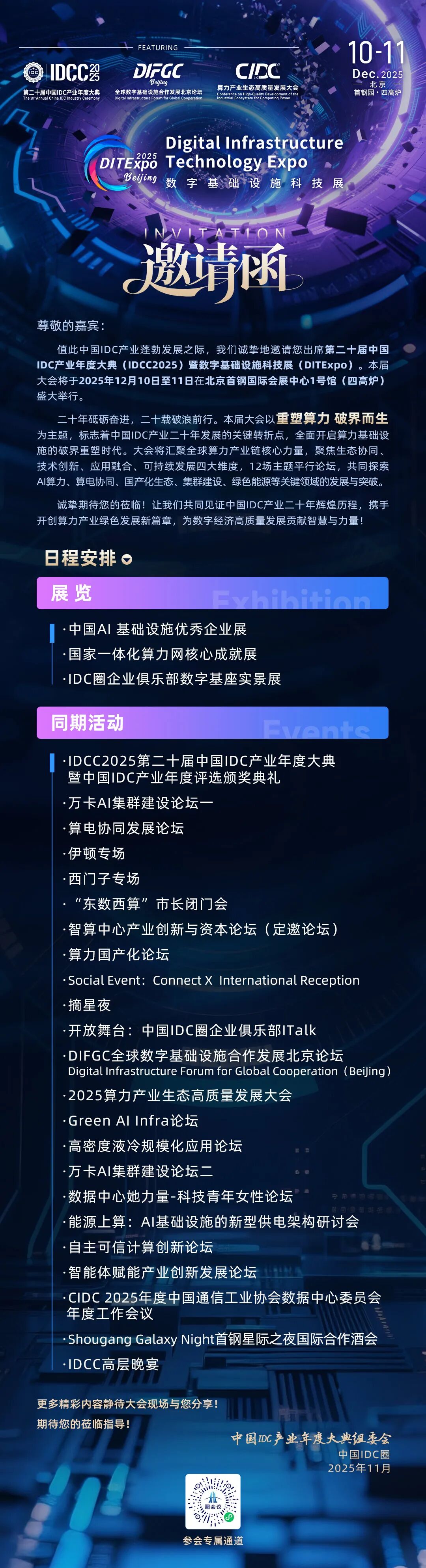 第二十届中国IDC产业年度大典(IDCC2025)暨数字基础设施科技展(DITExpo) 以“重塑算力 破界而生”为主题,将于2025年12月10-11日在北京首钢国际会展中心1号馆举办,将有超过12场主题平行论坛联合举办。↓↓↓扫码立即报名参会↓↓↓